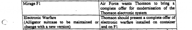 À cette période, les militaires du régime libyen exprimaient surtout le désir de mettre leur équipement aérien à niveau. À ce titre, ils demandaient à Thales de moderniser les systèmes électroniques des Mirages F1 (du groupe Dassault) acquis jadis à la France.