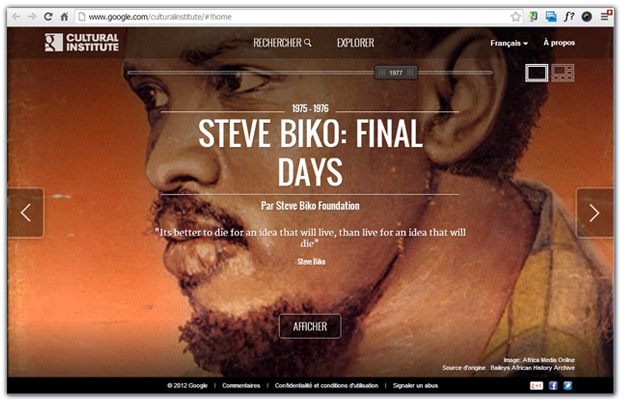 En design, “less is more” est un adage que j’apprécie dispenser et pratiquer. En effet, un site comme le Google Cultural Institute se retrouve a devoir aller à l’essentiel. Par exemple, avec cette page de recherche, on se retrouve un petit peu dans l’esprit du moteur de recherche de Google et nous gardons ainsi nos repères pour naviguer.
